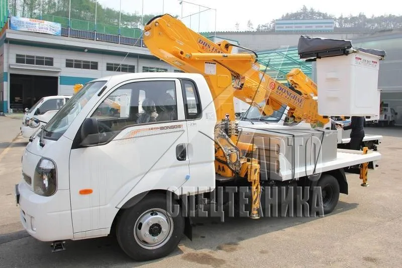 Автовышка Donghae DHS15AP корейского производителя Donghae Machinery подходит для работ в сферах городского и коммунального хозяйства в Мурманске: выполнение электромонтажных работ, монтаж рекламных щитов и конструкций, ремонт кабельных линий. Также может использоваться в строительных работах. Она состоит из бортовой платформы и крановой установки с рабочей высотой стрелы 14,5 м.