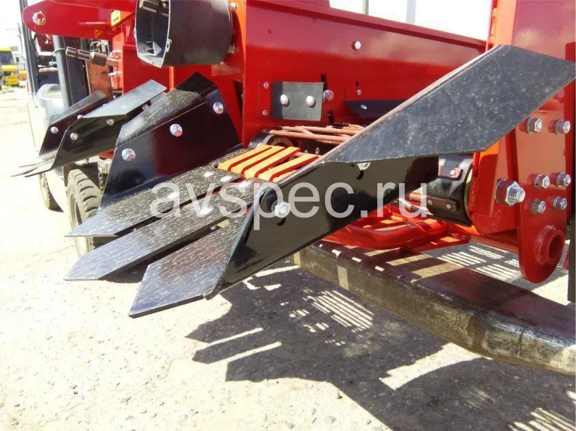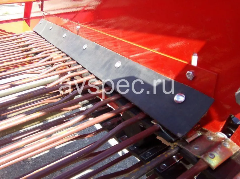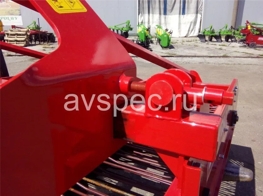 Не маловажным преимуществом является возможность сдвига копателя по поперечной оси т.е. картофелекопалку можно двигать влево и в право относительно навески трактора, что позволяет более точно ловить ряды и более качественно собирать урожай. Подвижный механизм транспортёра защищён резиновыми лентами что позволяет более бережно отрясывать клубни.