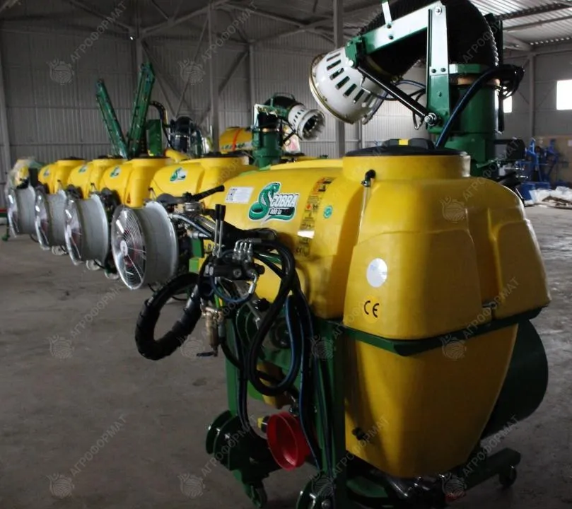 Гидродинамическая система смешивания жидкостей в баке объёмом 600 л. Автоматическая установка направления распыления состава при круговом вращении распыляющей турбины (расход – 115-145 л в минуту). Автоподача воды через фильтрационный шланг длиной 6 м. В комплекте: 8 двухпозиционных форсунок из латуни, карданный вал, насос APS-145 с четырьмя диафрагмами. Общий вес устройства – 345 кг, размеры – 155/142/170 см.