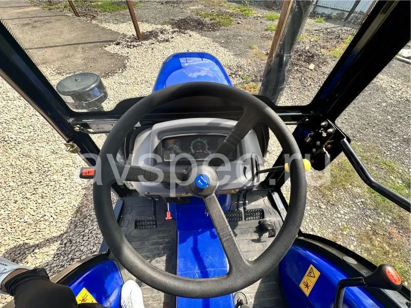 Работать в кабине Lovol TE-354 в холодное время комфортно за счет отопления двухуровневой печью. Трактор оборудован рулевым управлением с гидроусилителем. Гибкое управление обеспечено за счет переднего привода с гидроцилиндром на мосте. На Lovol можно установить экскаватор, оборудование для сбора урожая и культивирования почвы, фронтальный погрузчик.