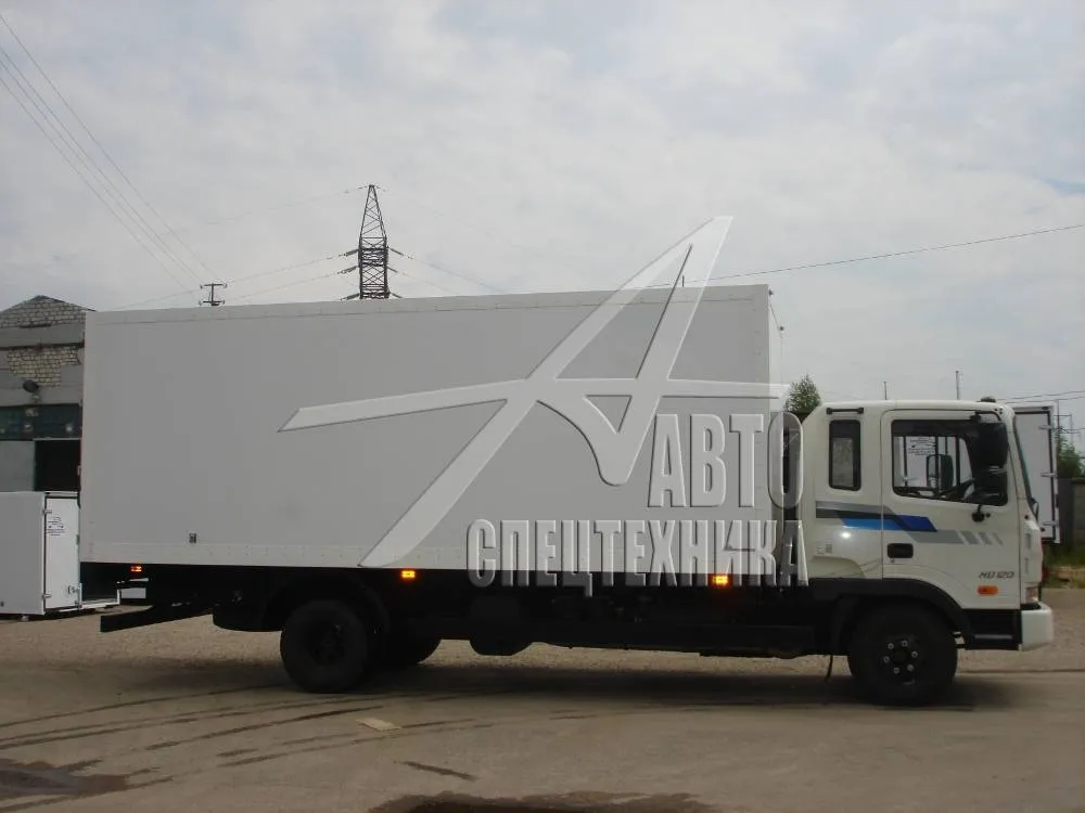 Тушевоз Hyundai HD-120 - среднетоннажный грузовой автомобиль с полной массой 12 000 кг и грузоподъёмностью фургона 6 200 – 6 500 кг. Перевозка туш в подвешенном состоянии в Мурманске. Грузоподъёмность тушевоза ниже составляет 2/3 от г/п фургона.